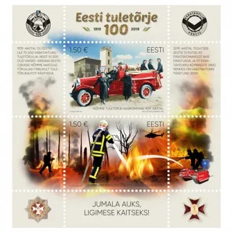 Eesti tuletõrje 100 on kahest margist koosnev margiplokk. Esimesel margil on Nõmme naistuletõrjujad kodumaal Laverna metallitööstuses ehitatud tuletõrjeautol. Teisel margil on vabatahtlik päästja, kopter ja Eestis valmistatud päästerobot metsatulekahjul. Mõlema margi väärtus on 1.50€. Marki saad kasutada üle maailma standardkirja saatmiseks.
